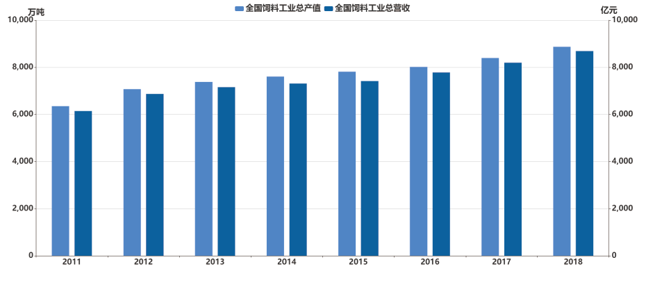 全國飼料工業(yè)總產(chǎn)值和營業(yè)收入情況