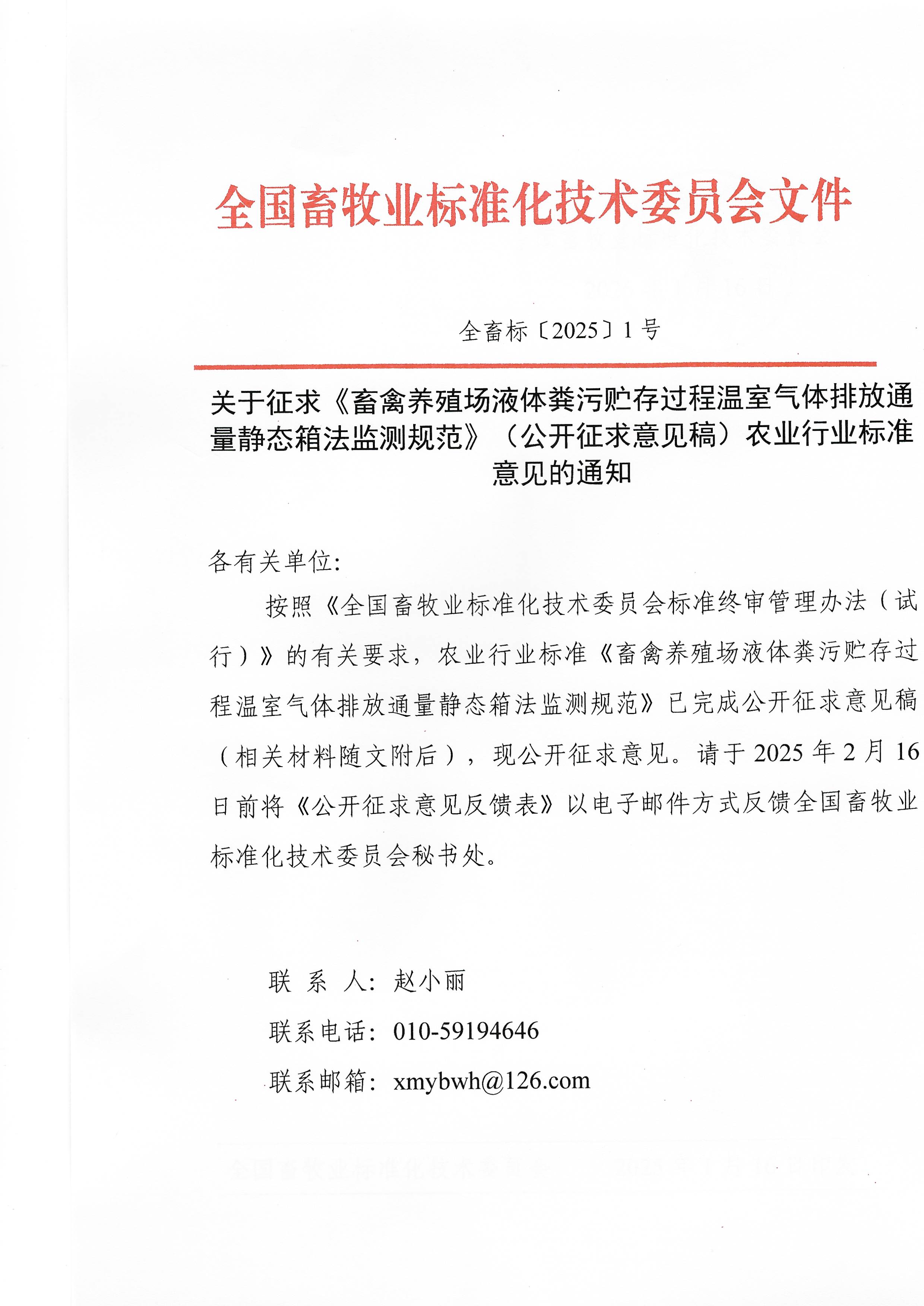關(guān)于征求《畜禽養(yǎng)殖場液體糞污貯存過程溫室氣體排放通量靜態(tài)箱法監(jiān)測規(guī)范》(公開征求意見稿)農(nóng)業(yè)行業(yè)標(biāo)準(zhǔn)意見的通知