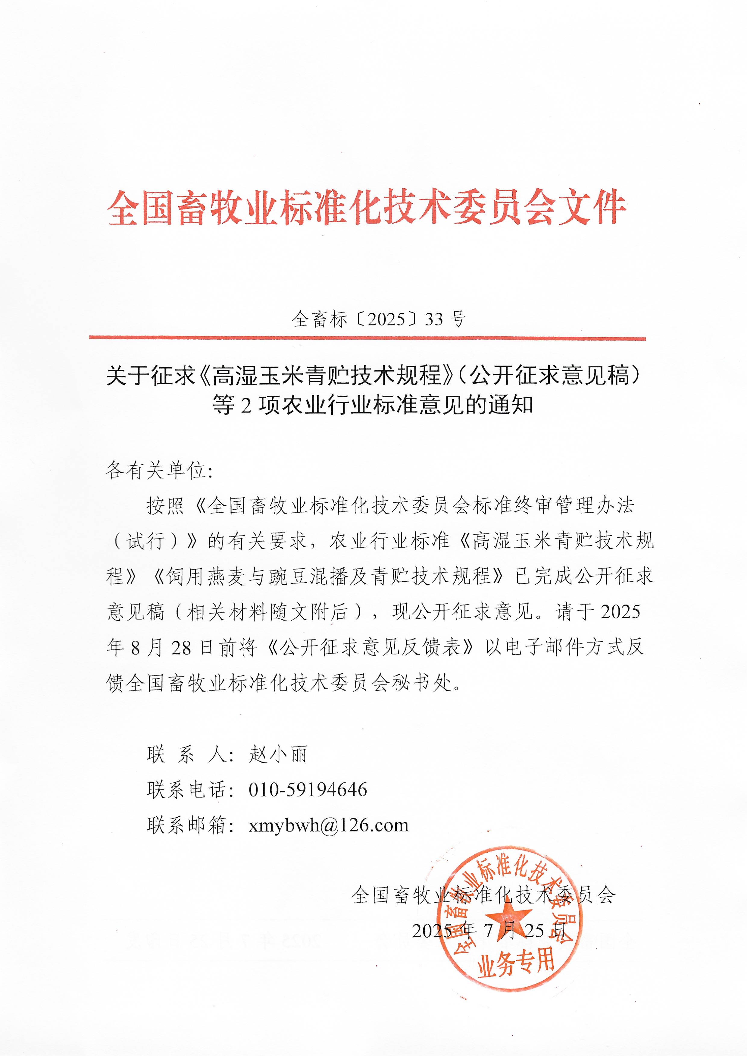 關(guān)于征求《高濕玉米青貯技術(shù)規(guī)程》(公開征求意見稿)等2項農(nóng)業(yè)行業(yè)標準意見的通知