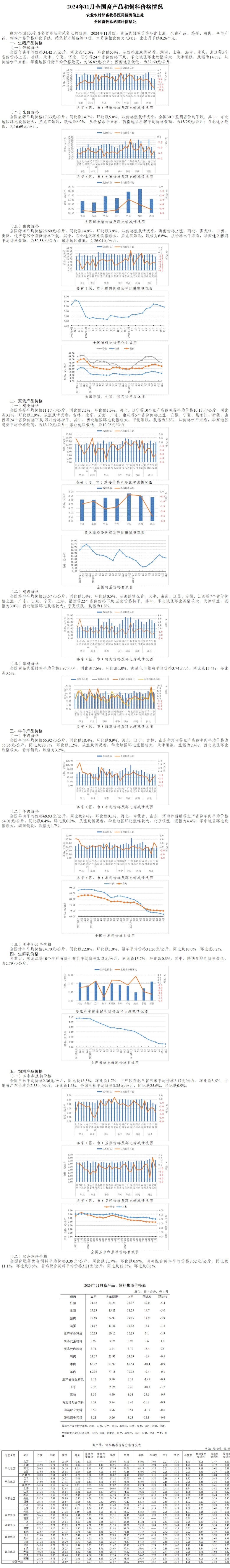 2024年11月全國畜產(chǎn)品和飼料價(jià)格情況