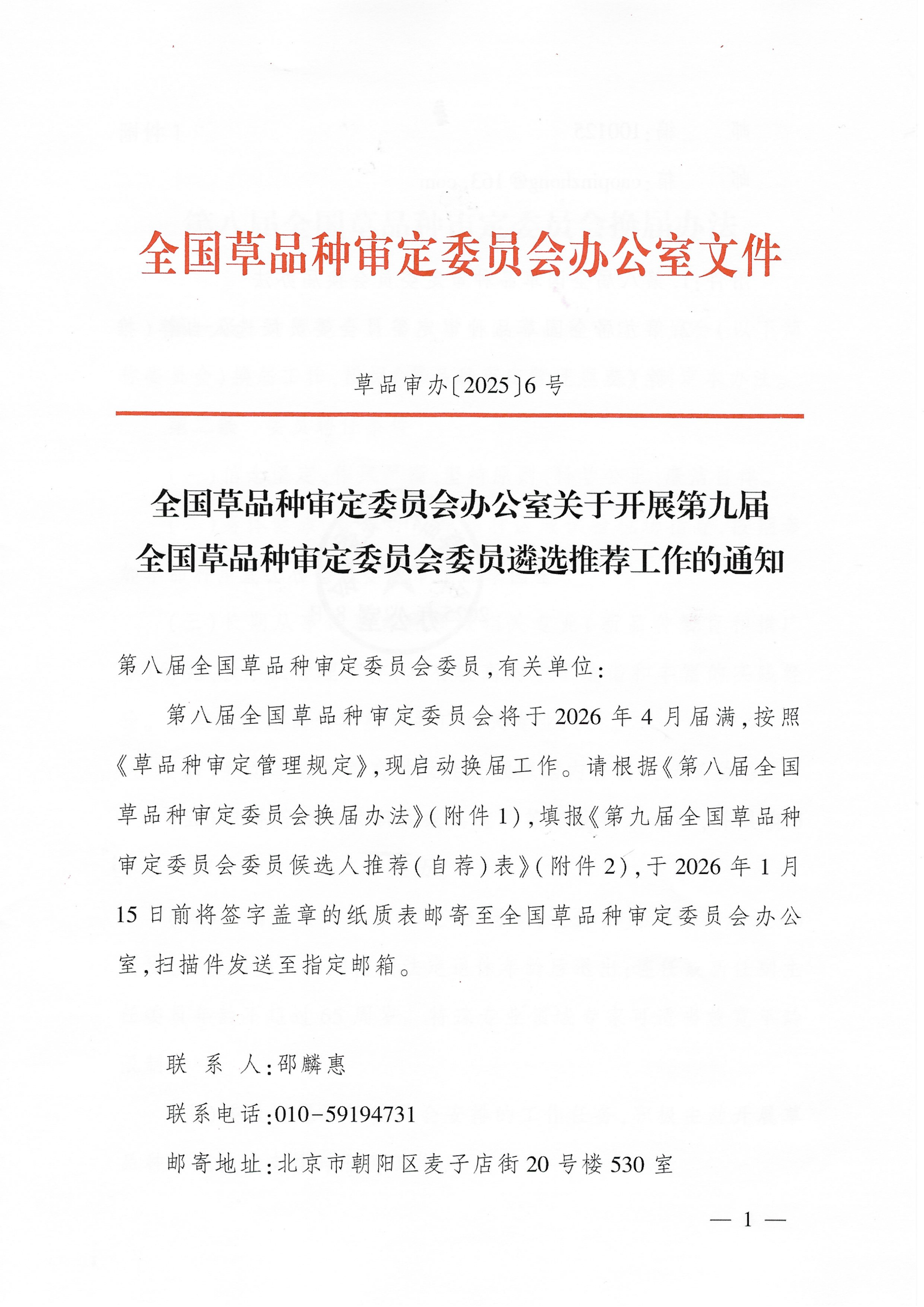 全國(guó)草品種審定委員會(huì)辦公室關(guān)于開(kāi)展第九屆全國(guó)草品種審定委員會(huì)遴選推薦工作的通知