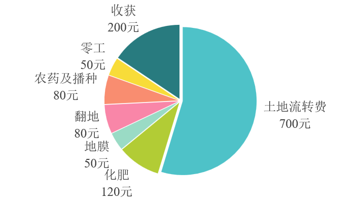 圖1 牧場流轉(zhuǎn)土地種植玉米的成本結(jié)構(gòu)
