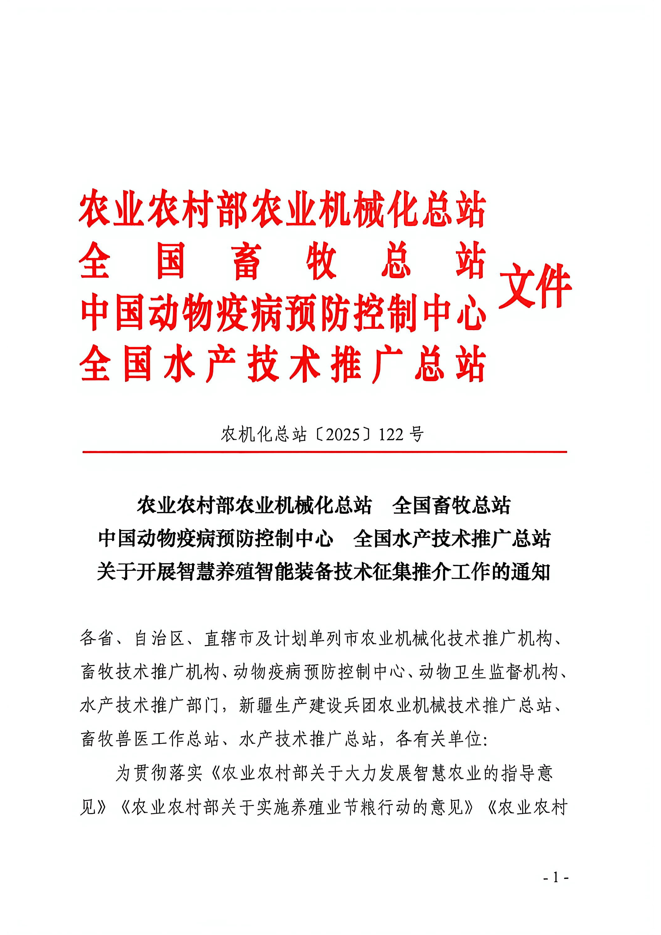 關于開展智慧養(yǎng)殖智能裝備技術征集推介工作的通知