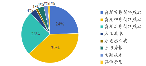 在飼料成本基礎(chǔ)上,附加人工成本300元/頭、水電燃料費(fèi)100元/頭、折舊攤銷300元/頭、金融成本200元/頭,其他費(fèi)用100元/頭,共計(jì)約1000元/頭,合計(jì)全周期總成本約8536元/頭,育肥期公斤增重成本約17.07元。