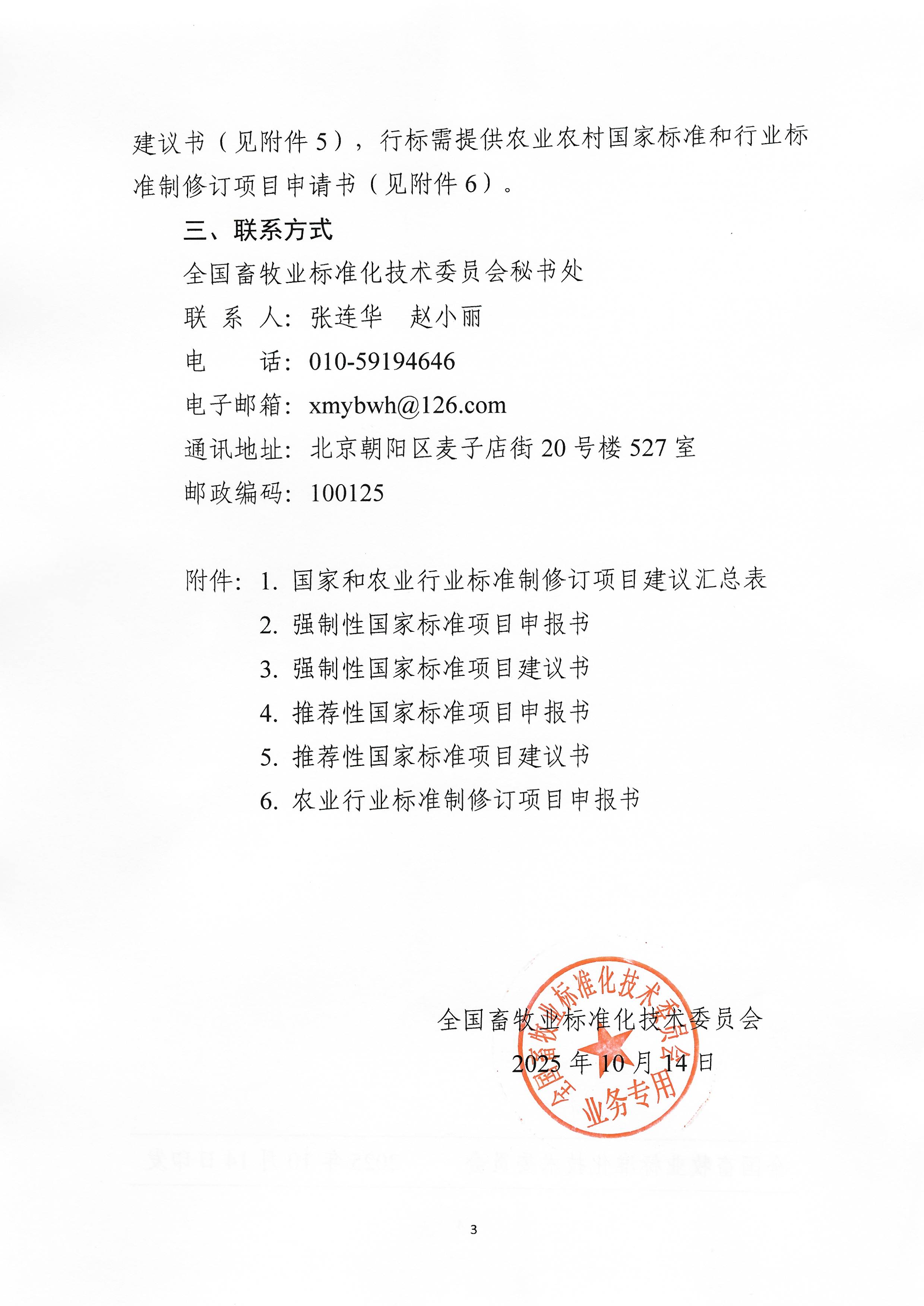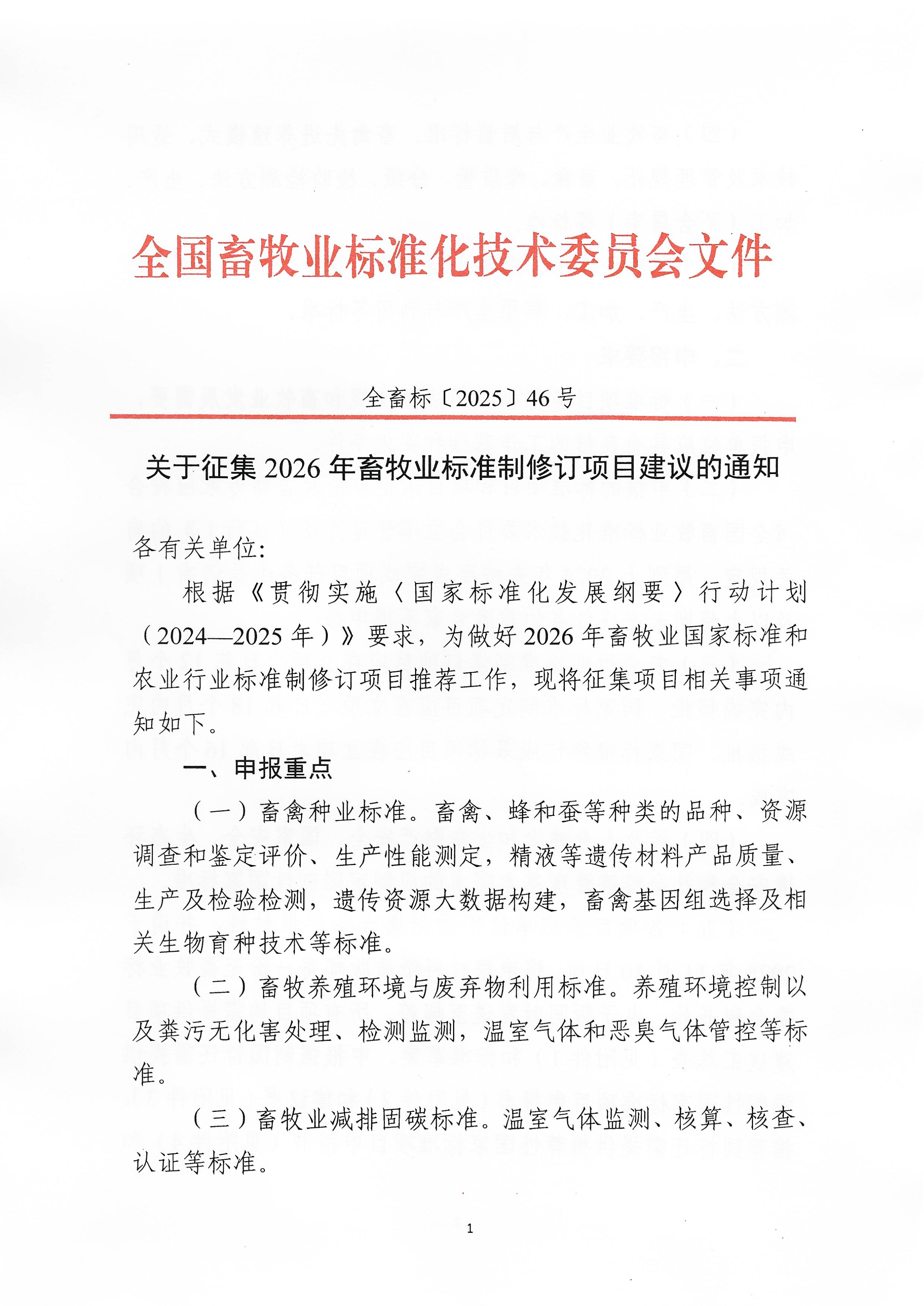 關(guān)于征集2026年畜牧業(yè)標(biāo)準(zhǔn)制修訂項(xiàng)目立項(xiàng)建議的通知