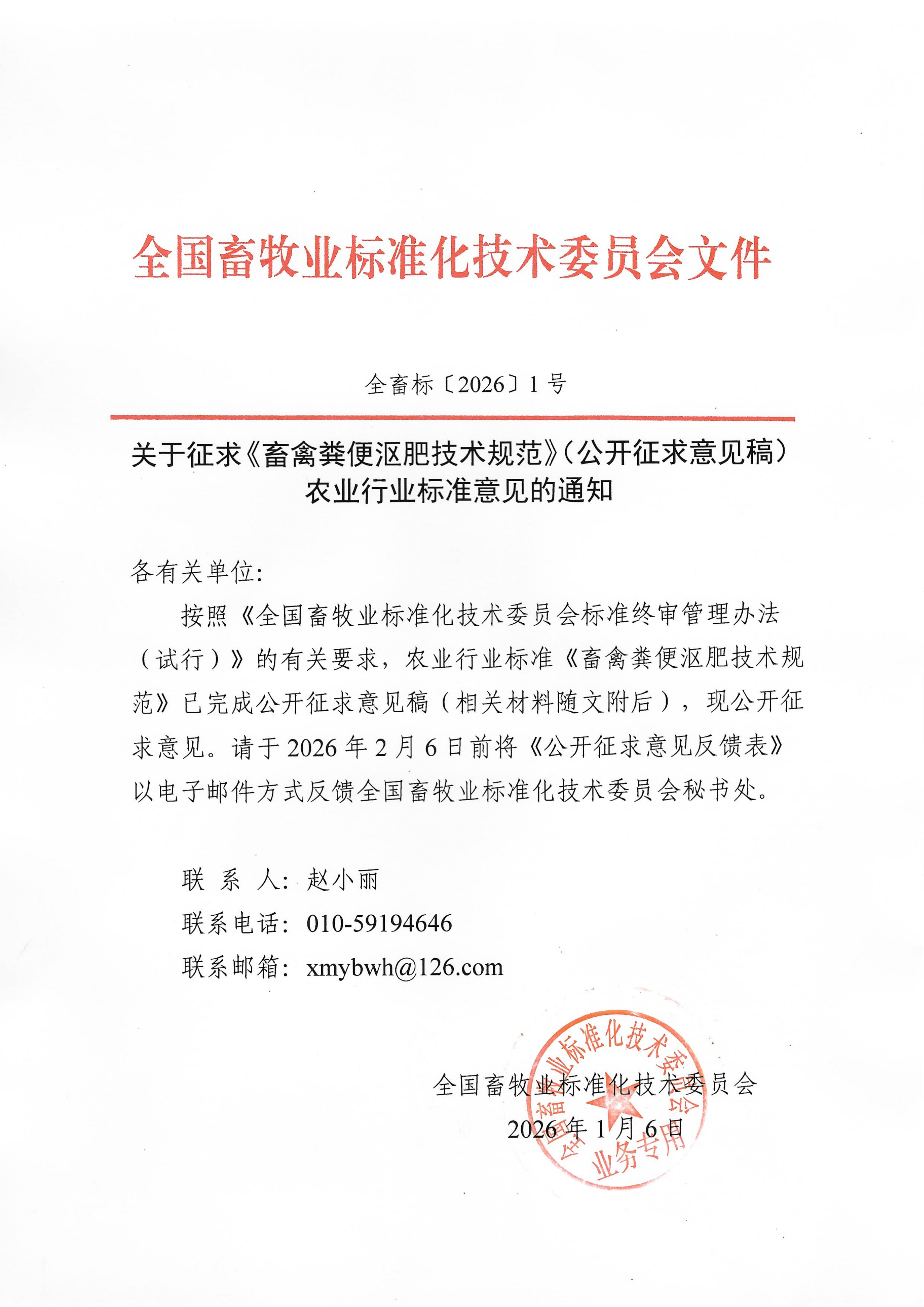 關(guān)于征求《畜禽糞便漚肥技術(shù)規(guī)范》(公開征求意見稿)農(nóng)業(yè)行業(yè)標準意見的通知