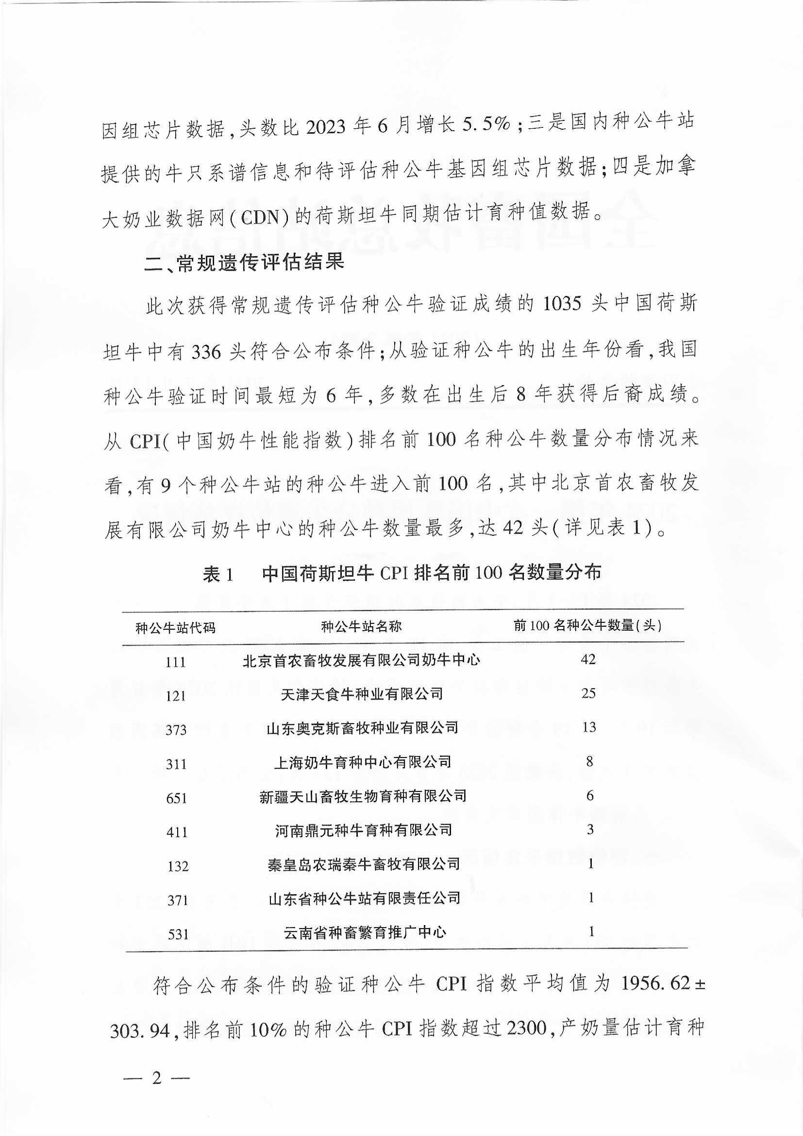 全國畜牧總站信息(2024年第7期)-2024年第一次中國乳用種公牛遺傳評估情況