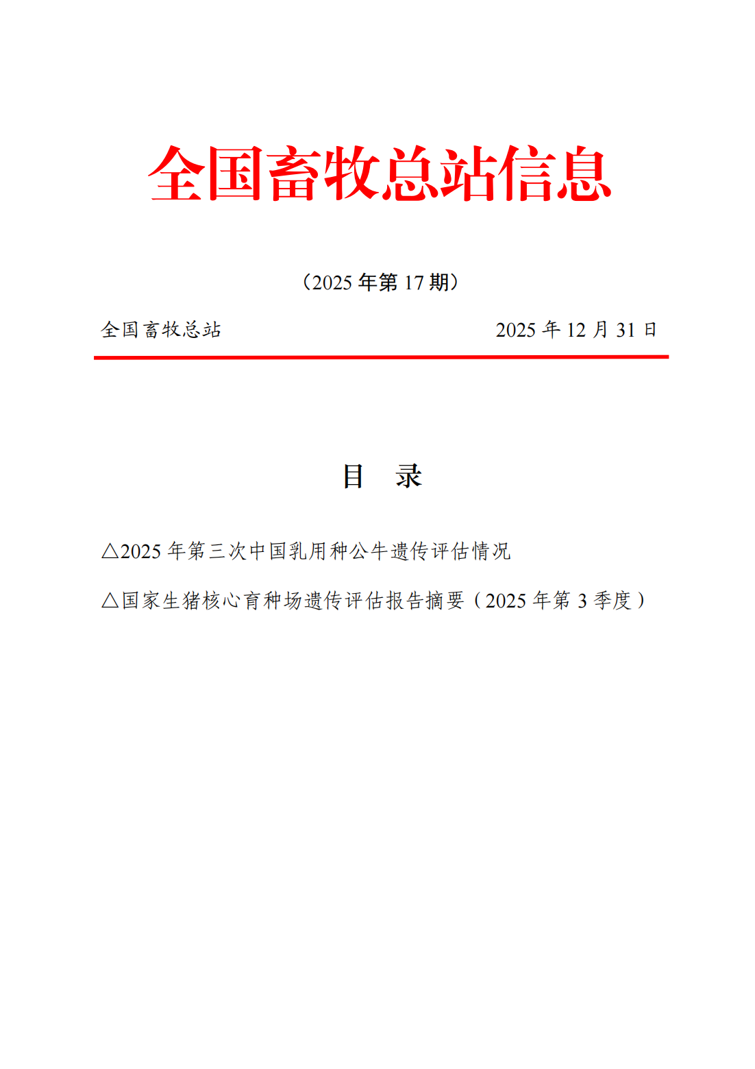 全國畜牧總站信息2025年第17期-2025年第三次中國乳用種公牛遺傳評估情況、國家生豬核心育種場遺傳評估報告摘要(2025年第3季度)